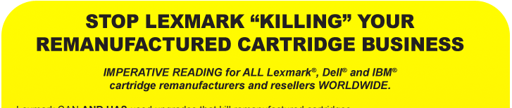 這是來自印表機卡匣相容晶片製造商 Static Control 的警告訊息,如果使用者接受利盟 Lexmark (或戴爾 Dell、IBM) 印表機的更新建議,那麼以後這些印表機就只能使用原廠的碳粉匣而無法使用環保再生匣。為了保有使用環保且便宜的碳粉匣,請記得對這些印表機更新說不。